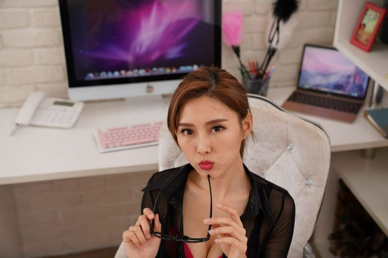 台湾腿模丝袜高跟鞋美腿棚拍郭珉妏性感OL黑丝高跟美腿